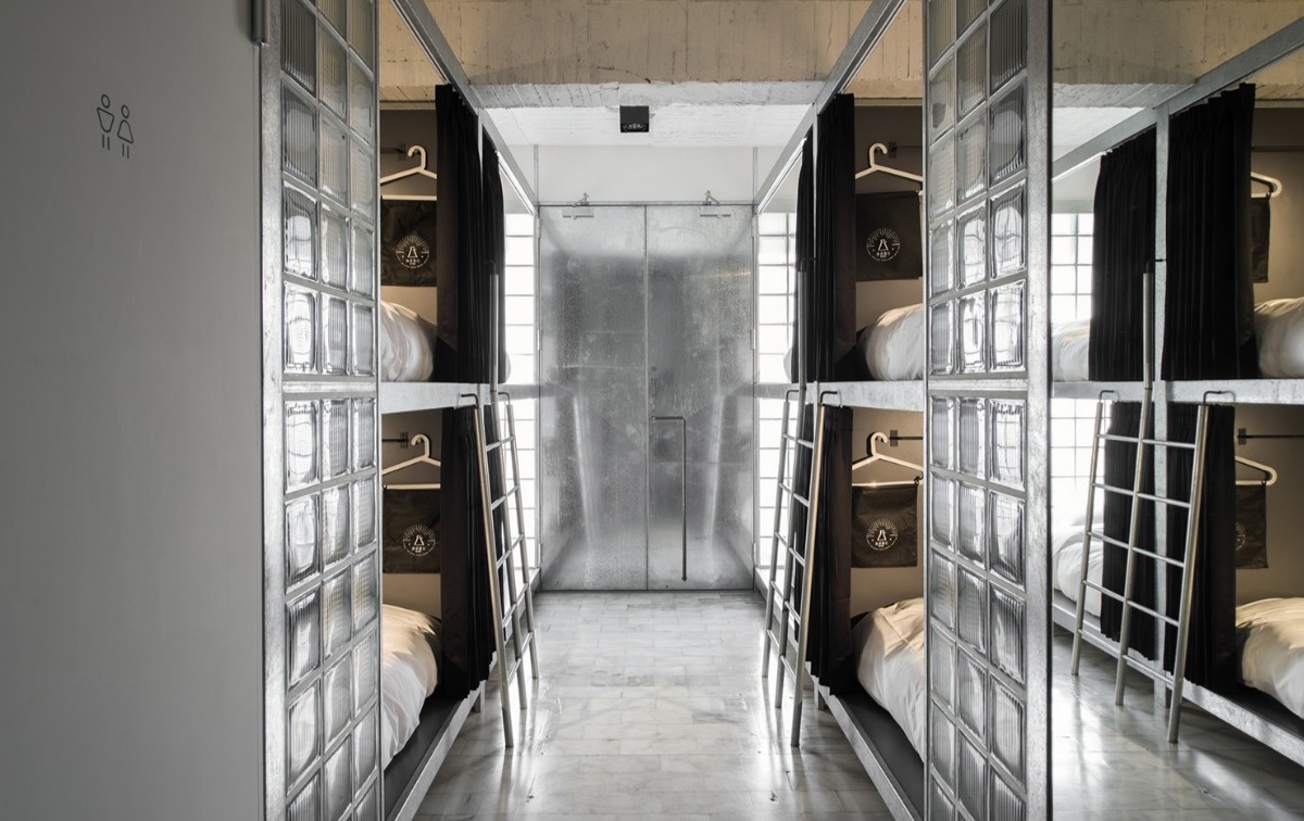 背包客八人房內有一間設置免治馬桶的廁所,讓夜晚內急的旅人不用再睡眼惺忪走一段路。床體與房子結構固定在一起,睡覺翻身不太會吵到下鋪客人。床位有120公分寬,每床都有兩個插座與小燈、乾淨毛巾、還有一個黑色印有logo的盥洗束口袋做為禮物,方便大家去公共衛浴的時候裝私人衣物。陽台設置了盥洗區,能就近迎著晨曦刷牙洗臉,不用再跑公共區。