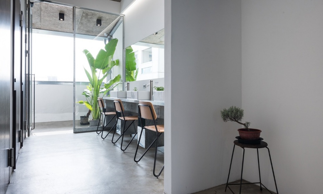 一樓的萃行咖啡,呈現鐵件與塌塌米的趣味對比。二樓為櫃檯與公共區域,三、四樓是住宿空間,五樓為乾濕分離公共衛浴。大量使用玻璃磚引進天光,讓縱深的老屋內部也光感通透。地下室展出快活實驗室的藝術作品,整棟建築元素豐富,更以管家的親切接待,串起旅人有溫度的美好旅行。